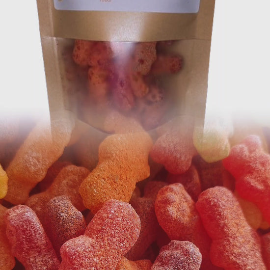 Discover the deliciously tangy taste of Li hing sour teddy bears, coated with a blend of invert sugar and sour sugar. Enjoy the unique flavor combination that has been perfected through years of experience and expertise in creating high-quality, mouthwatering candy. Try Li hing sour teddy bears today and indulge in a one-of-a-kind treat.